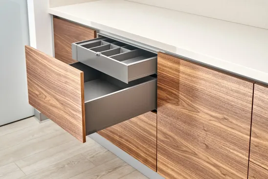 Solutions pour augmenter l'espace avec des systèmes de rail à fonctionnement discret et des finitions entièrement personnalisables.