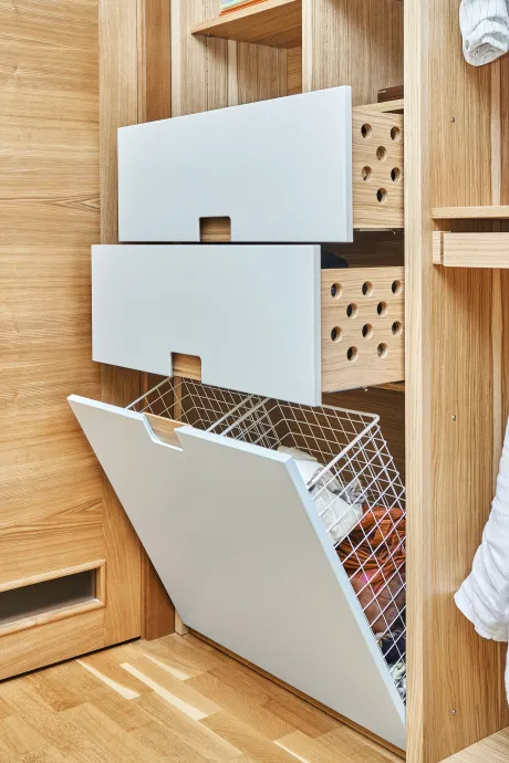 Configurations minutieusement élaborées avec tiroirs, étagères et penderies ajustées à vos habitudes et besoins spécifiques.