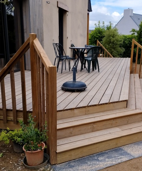 Étendez votre habitat avec une terrasse en bois ou composite harmonieusement intégrée à votre environnement. Notre équipe d'artisans qualifiés réalise votre terrasse qui devient le cœur de votre jardin et crée un espace de convivialité. Vous pourrez savourer chaque moment à l'extérieur en rehaussant efficacement votre propriété à Romillé et aux alentours de Rennes.